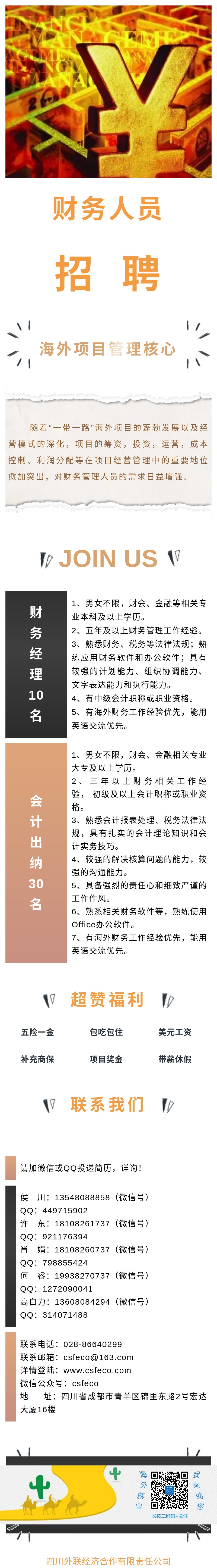 央企海外项目财务人员招聘